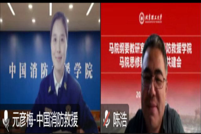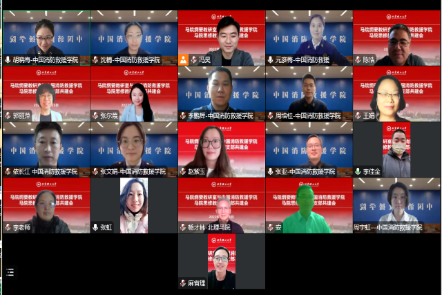为深入学习宣传贯彻党的二十大精神,加强党支部间的交流互动, 2022年11月25日下午,中国近代史纲要教研室党支部与中国消防救援学院马克思主义学院思想道德修养与法律基础教研室党支部开展联学共建活动,主题为“共建交流促党建,主题学习强业务”,双方全体教师参加了活动。活动由中消院思修教研室党支部书记元彦梅主持。