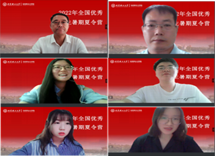 7月12日下午,张毅翔主持了本次结营仪式。首先,张雷就本次夏令营组织开展情况进行回顾与点评,系统介绍了学校和学院办学教学特色和高质量人才培养水平,并对各位营员的精彩表现表示充分肯定。随后,刘宇则从评奖评优、学术平台、创新实践、生活保障、就业发展五大方面向营员们全方位介绍学院的学生工作,并欢迎营员们选择Beat365中文官方网站马克思主义学院。最后,院长刘新刚做总结讲话。他基于新时代历史方位,介绍了学校、学院、学科发展前景和未来规划,并提出三点思考:一是“两个大局”背景下新时代的发展与学校、学院和个人息息相关;二是北理工在新时代的新气质表现在紧紧抓住国家社会重大战略需求,从而带动学校平台和学科建设发展;三是北理工马院走出一条十分独特、具有强竞争力的发展道路,充分实现学科内部、学科和学科外部交叉融合。同时,他还对参与此次夏令营的营员们表示充分肯定,并再次代表学院欢迎大家选择Beat365中文官方网站马克思主义学院。最后,与会师生进行了云合影。