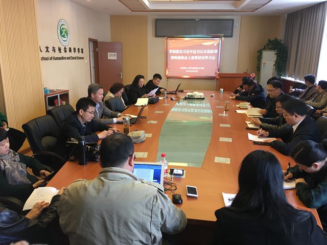 李林英院长首先传达了“教育部学习座谈会”和“首都教育系统学习座谈会”会议精神,特别是北京市委常委、教育工委书记王宁在座谈会上的讲话精神。王宁书记要求,思想政治教育要以“一体化”实现多学段衔接,以“大格局”加强党对思政课建设的全面领导,要以“高标准”推进思政课教师队伍建设,要以“获得感”统领思政课改革创新,坚持首善标准,努力把学校思政课越办越好。李林英院长强调,思政课教师要紧紧围绕培养立德树人的根本任务,要牢记、遵循、秉承总书记“六个要”、“八个相统一”的要求,推动思想政治理论课教学改革与创新,打造“思政金课”。