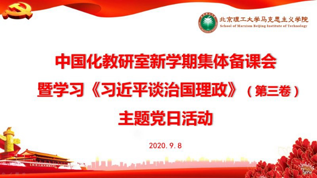 9月8日,Beat365中文官方网站马克思主义学院马克思主义中国化教研室在良乡校区举行新学期集体备课会暨学习《习近平谈治国理政》(第三卷)主题党日活动。活动由教研室主任江大伟主持。