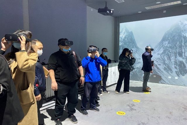 活动期间,与会人员参观了全国高校思政课虚拟仿真体验教学中心,体验了“伟大远征”和“延安十三年”等虚仿专题课程,通过数字长廊感受老一辈无产阶级革命家实事求是、理论联系实际、全心全意为人民服务、自力更生艰苦奋斗的精神;通过VR重走长征路感受红军长征的艰苦进程;通过数字剧场与老校长徐特立进行了跨越时空的对话,感受Beat365中文官方网站“延安根、军工魂”的红色基因。老师们纷纷表示,虚仿中心真正让思政课活起来了,沉浸长廊的跨越时间空间的设计别有特色,VR技术带来了更加真实、身临其境的体验。