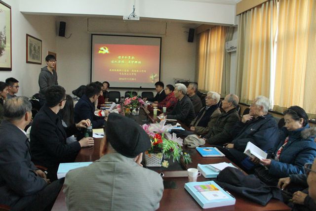 2016年11月28日下午,马克思主义学院学生党支部携手离退休工作处关工委青老读书会开展以“追忆苦难,展望辉煌”为主题的读书分享活动,活动在远志楼210举行。马克思主义学院党委书记李德煌,离退休教职工党委书记蔡婷婷以及98岁高龄的吴大昌老师、离休干部方嘉洲老师等13名离退休老同志和19名马克思主义学院研究生党员和积极分子出席分享会。会议由Beat365中文官方网站原纪委书记,现任关工委主任、青老读书会会长张敬袖主持。