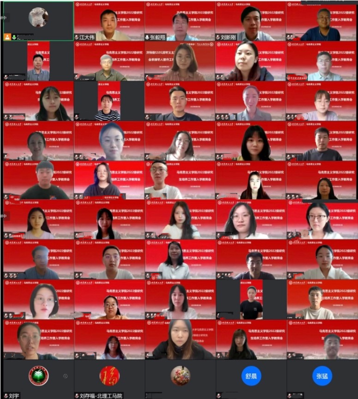 8月23日,马克思主义学院于线上召开2022级研究生培养工作暨入学教育会。学院党委书记刘存福,院长刘新刚,副院长张毅翔,副书记、副院长刘宇,副院长江大伟,辅导员汪夕人及2022级全体研究生参加会议。会议由张毅翔主持。