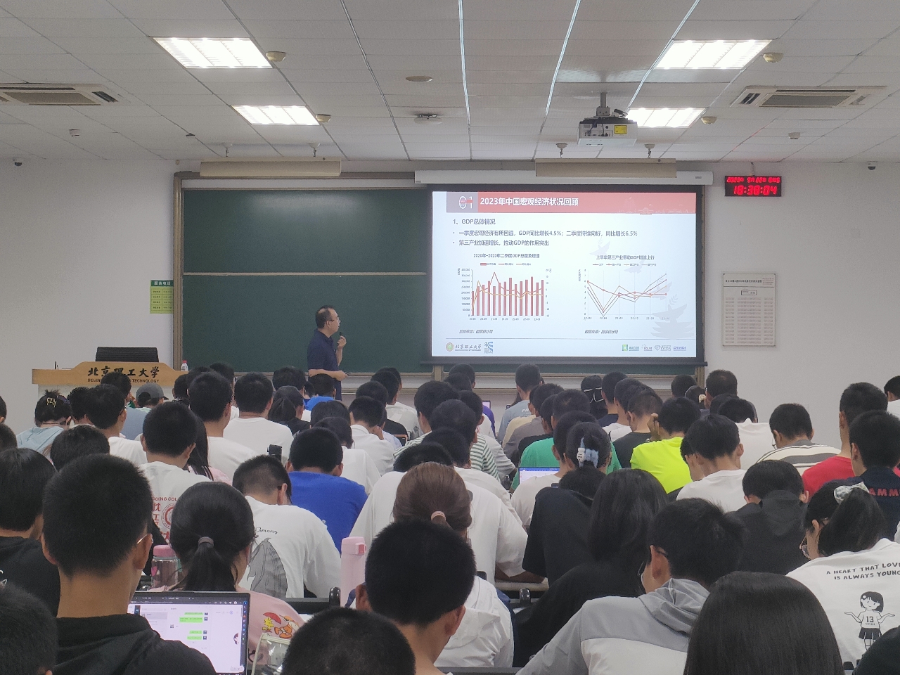 9月22日晚,Beat365中文官方网站马克思主义学院主办的2023年秋季学期首期“形势与政策大讲堂”在良乡校区综合教学楼A203开展,活动由形势与政策教研室主任李璎珞主持。本次活动特邀来自Beat365中文官方网站管理与经济学院应用经济系的吕鑫教授进行主题为“2023年我国宏观经济形势分析”的专题讲座,此次讲座采用线下讲座和线上延河课堂直播相结合的方式,共有14个班级、1700余名本科一、二年级学生参加。