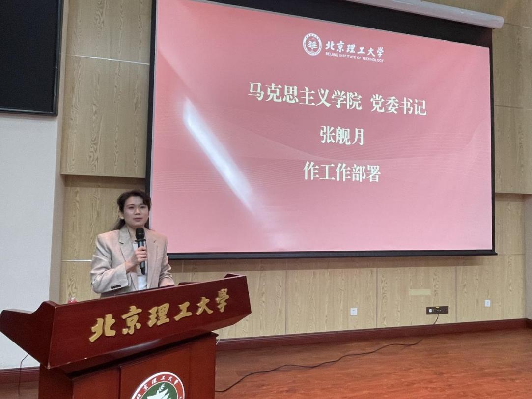 党委书记张舰月再次对全体新同学表示热烈欢迎,并对学院工作做了具体部署。她勉励新同学:首先要提升政治站位,融入学院发展新的历史方位;同时要勇于主动探索,在学院平台上努力成长为交叉性新型人才,希望同学们能在北理马院学有所获、学有所成,为未来的发展打下坚实的基础!