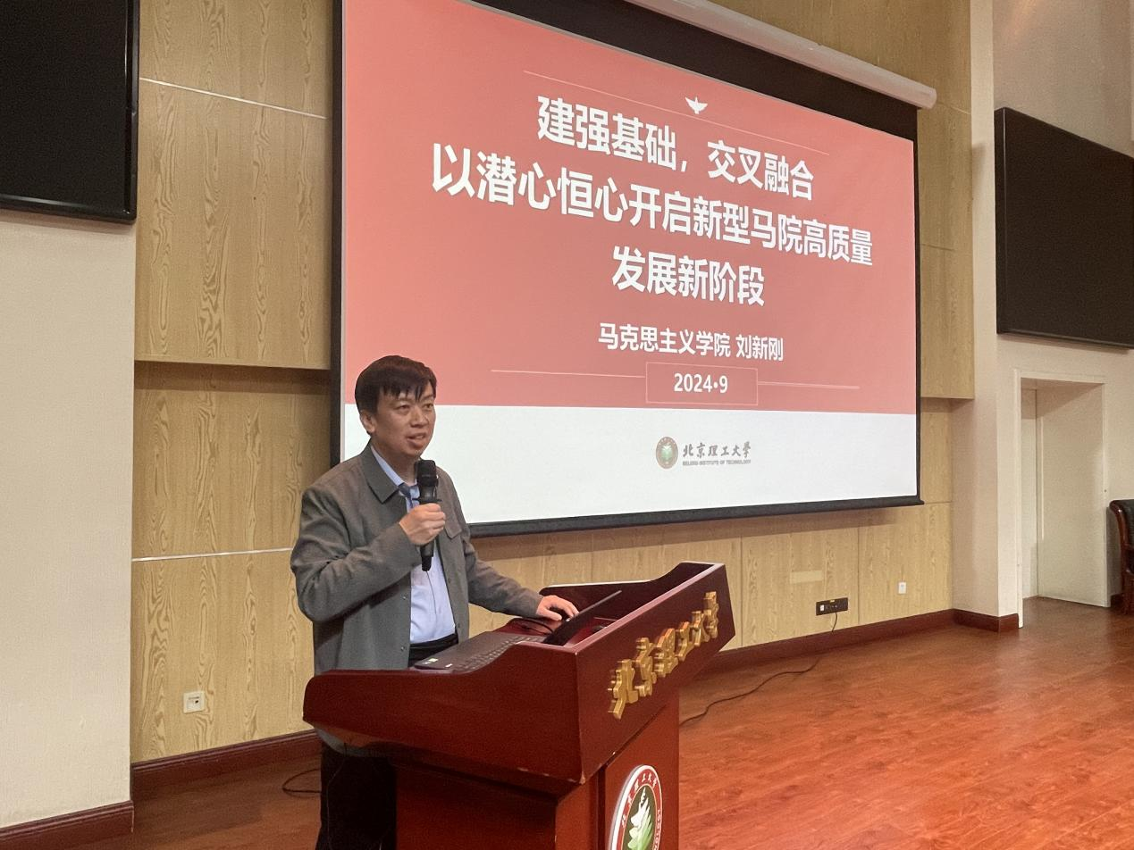院长刘新刚讲授“开学第一课”,他以“建强基础、交叉融合、以潜心恒心开启新型马院高质量发展新阶段”为题,详细介绍了在学校发展新的历史方位下北理工马院何为。他表示,在学院师生的共同努力下,学院各项事业取得长足进步。他勉励全体2024级新生要有矢志交叉的恒心和钻研交叉的潜心,以加倍的时间与钻研,破解交叉难题,产出高端交叉成果,为强院建设持续赋能。
