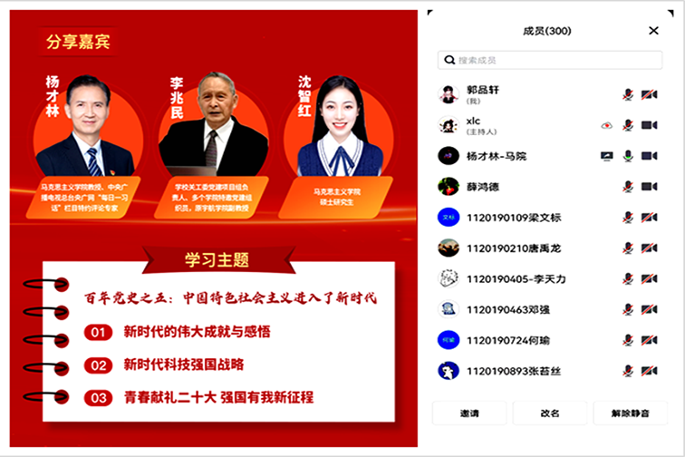 本期活动是学校关工委、马克思主义学院、离退休工作处/离退休教职工党委联合开展的“百年党史老少共学”系列活动最后一期。该系列活动的举办,受到参与师生的充分肯定和赞誉。系列活动通过老中青共学联讲,从不同视角阐释百年党史,旨在引导老少党员更加坚定感党恩、听党话、跟党走的信心与决心,以统一的思想认识、坚定的理想信念、实际的行动担当共同迎接党的二十大胜利召开。